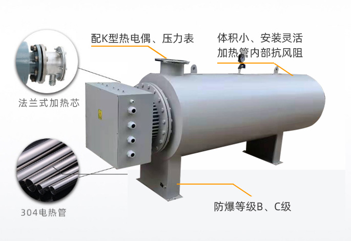產(chǎn)品概述:空氣加熱器主要對(duì)氣體流進(jìn)行加熱的電加熱設(shè)備。空氣加熱器的發(fā)熱元件為不銹鋼電加熱管,加熱器內(nèi)腔設(shè)有多個(gè)折流板(導(dǎo)流板),引導(dǎo)氣體流向,延長(zhǎng)氣體在內(nèi)腔的滯留時(shí)間,從而使氣體充分加熱,使氣體加熱均勻,提高熱交換效率??諝饧訜崞鞯募訜嵩讳P加熱管,是在無縫鋼…